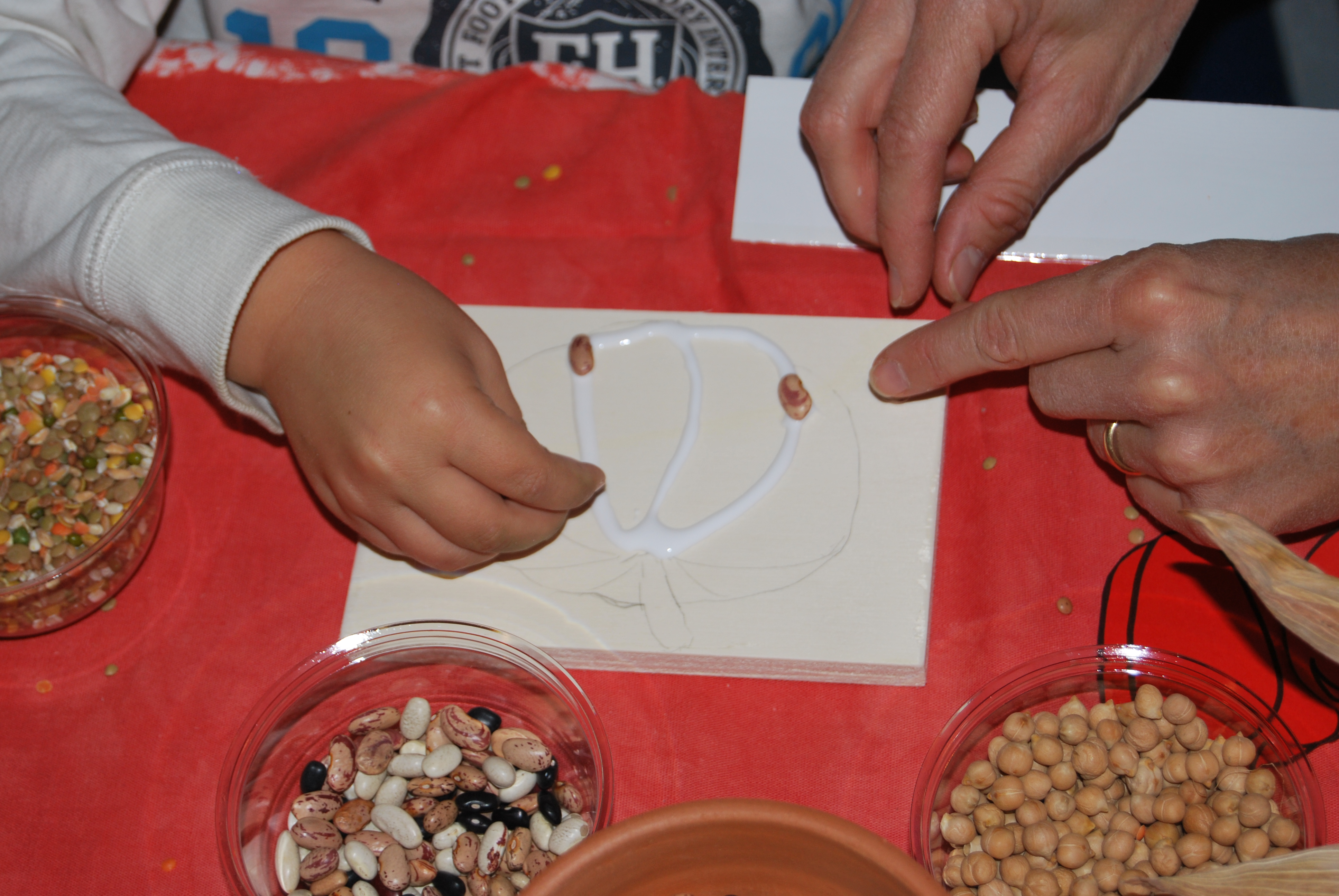 Attaccare i semi lungo il contorno della figura